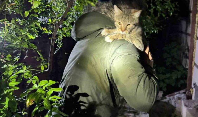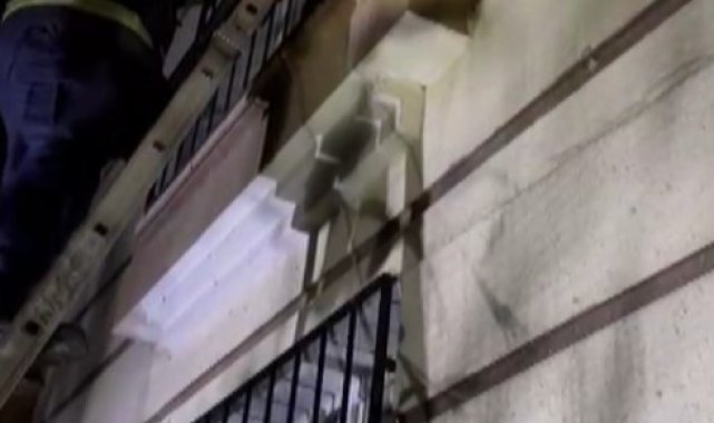 Balkonda mahsur kalan kediyi itfaiye kurtardı