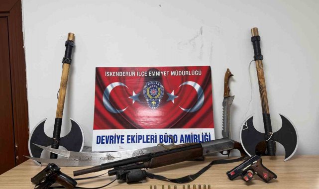 İskenderun ilçesi Yunus Emre Mahallesi'nde müstakil bir evin balkon kısmında, gözle görülür vaziyette silah ve farklı eşyalar sergilendiği bilgisini alan polis ekipleri eve giderek çalışma başlattı. Hatay Emniyet Müdürlüğü görevlilerince 17 Nisan tarihinde söz konusu eve gidildiğinde; 1 adet tüfek, 2 adet tabanca, balta ve kılıcın çamaşır gibi balkonda asılı olduğu görüldü. Yaptığıyla hayrete düşüren şüpheli B.A. yakalandı ve hakkında gerekli işlemler yapıldı.