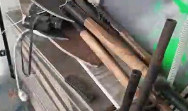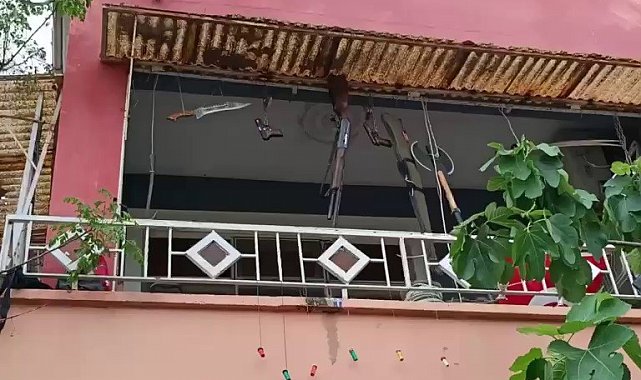 Hatay'da evinin balkon kısmında tüfek, tabanca, balta ve kılıcı çamaşır asarcasına asan ve sergileyen şahıs yaptığıyla hayrete düşürdü.