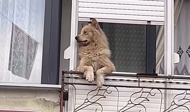 Tekirdağ'ın Hayrabolu ilçesinde balkondaki bir köpek, caddeyi izleyerek mahalle sakinlerinin yüzünü güldürüyor.