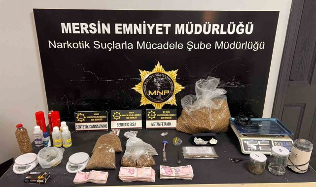 Adreslerde yapılan aramada 701 Gram Sentetik Kannabionid, 3 kilo 250 gram tütün, Kannabionid yapımında kullanılan kimyasal maddeler, çok miktarda metamfetamin, A/M ve Sentetik ecza maddesi, 3 adet hassas terazi ile uyuşturucu kullanma aparatları ele geçirildi.
