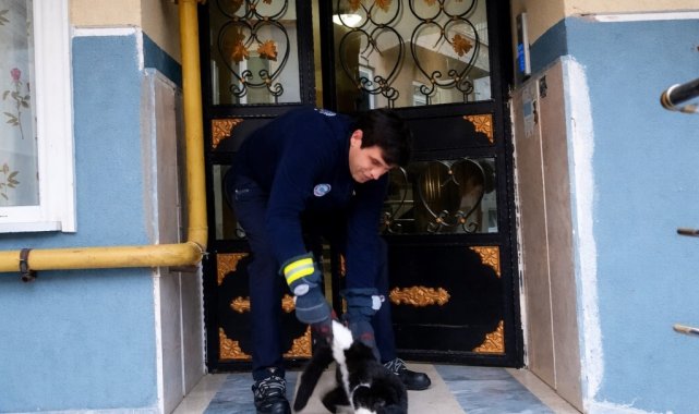 Muradiye Mahallesi 103. Sokak'ta bulunan apartmanın dış cephesindeki doğal gaz çıkıntısında sıkışan kediyi fark eden vatandaşlar durumu yetkililere bildirdi. Olay yerine gelen itfaiye ekipleri, dikkatli bir çalışma yürüterek balkondan müdahale etti. Uzun süren titiz çalışmanın ardından kedi bulunduğu yerden güvenli şekilde alındı.