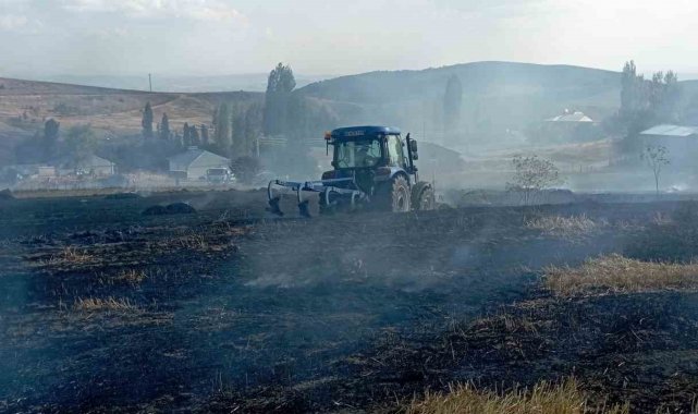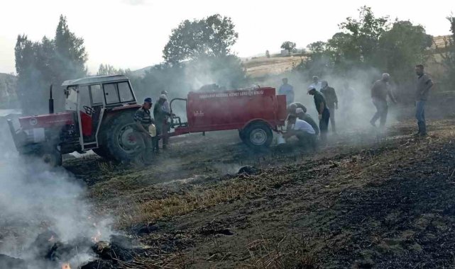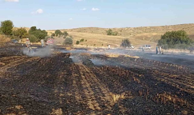 Balya makinesinden çıkan kıvılcım 10 dönüm araziyi kül etti