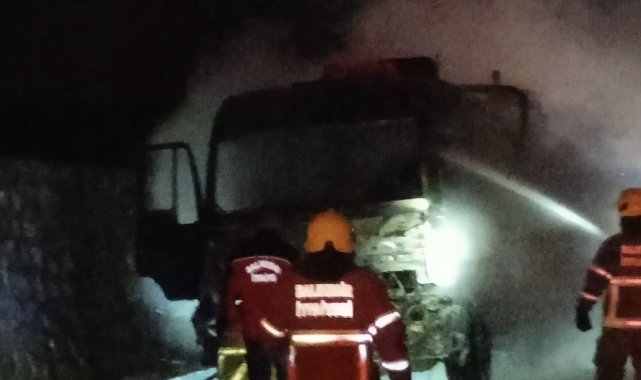 Balıkesir'in Bandırma ilçesinde, Bandırma-Çanakkale karayolu Merinos mevkisinde bir tırın kupasında yangın çıktı.