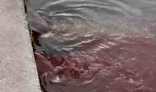 Bandırma'da deniz yüzeyi kırmızıya döndü
