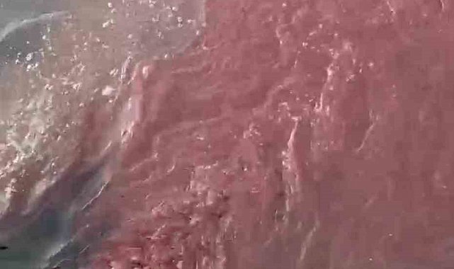 Balıkesir'in Bandırma ilçesinde arıtılmadan döküldüğü öne sürülen atık su nedeniyle deniz yüzeyi yer yer kırmızıya boyandı.