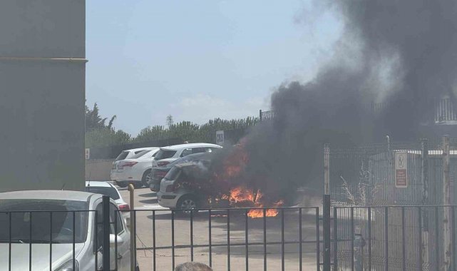 Balıkesir'in Bandırma ilçesinde hastane otoparkında park halinde bulunan otomobil alev aldı. İtfaiye ekiplerinin müdahalesiyle söndürülen yangında araç kullanılamaz hale geldi.