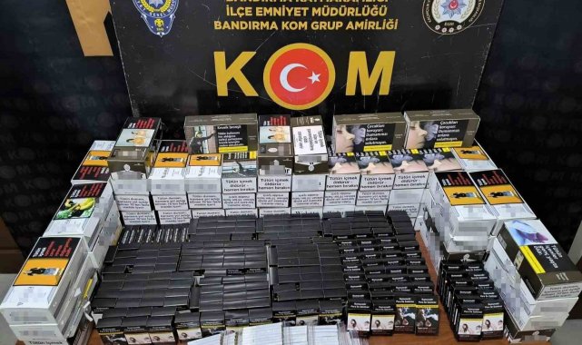 Balıkesir'in Bandırma ilçesinde Kaçakçılık ve Organize Suçlarla Mücadele (KOM) Büro Amirliği ekipleri, 28-29 Ağustos tarihlerinde gerçekleştirdikleri operasyonlarda çok sayıda kaçak sigara ve silah ele geçirdi.