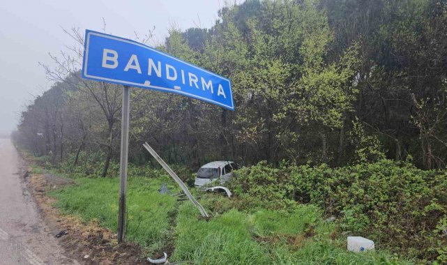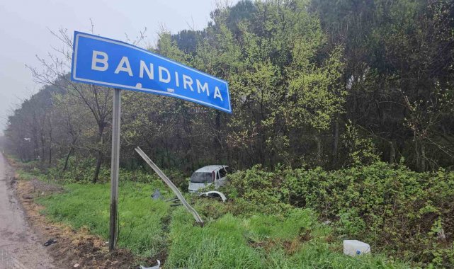 Balıkesir'in Bandırma ilçesinde direksiyon hâkimiyetini kaybeden araç önce tabelaya çarptı sonra yoldan çıktı.Sürücü kazayı hafif şekilde atlattı.