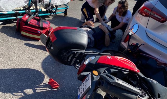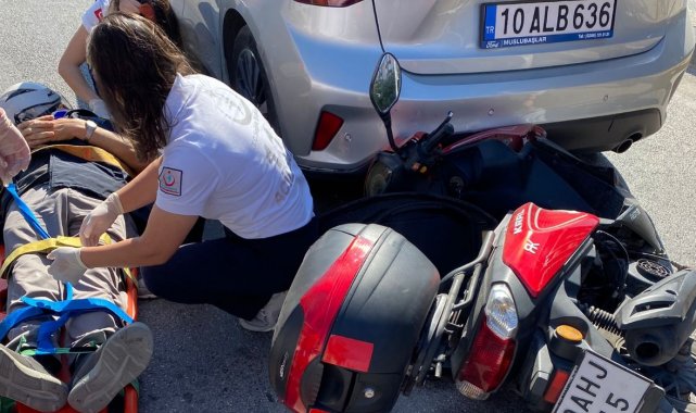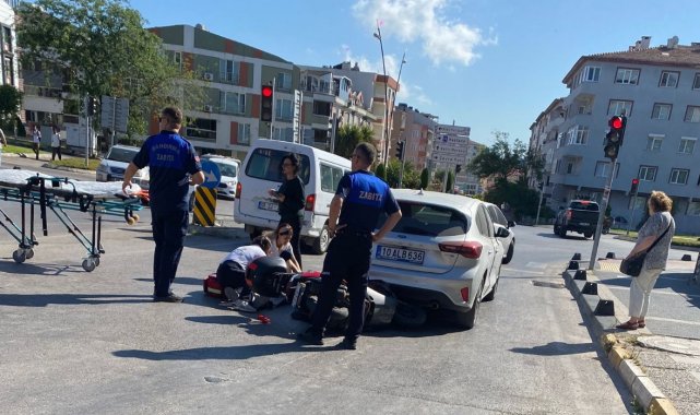 Balıkesir'in Bandırma ilçesinde kırmızı ışıkta bekleyen otomobile motosiklet çarptı.