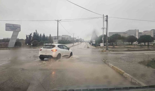 Balıkesir'in Bandırma ilçesinde sabah saatlerinde etkili olan yoğun sağanak yağış, hayatı olumsuz etkiledi. Şiddetli yağmur, cadde ve sokakları göle çevirdi.