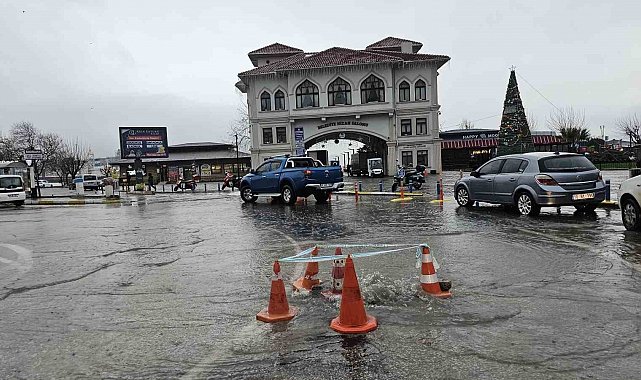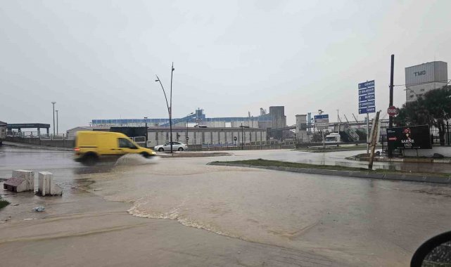 Bandırma'da sağanak yağış yolları göle çevirdi, rögarlar patladı