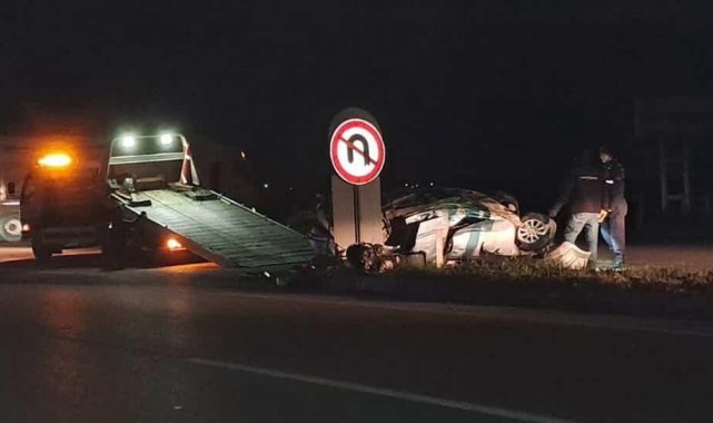 Bandırma'da takla atan araçta 2 kişi yaralandı
