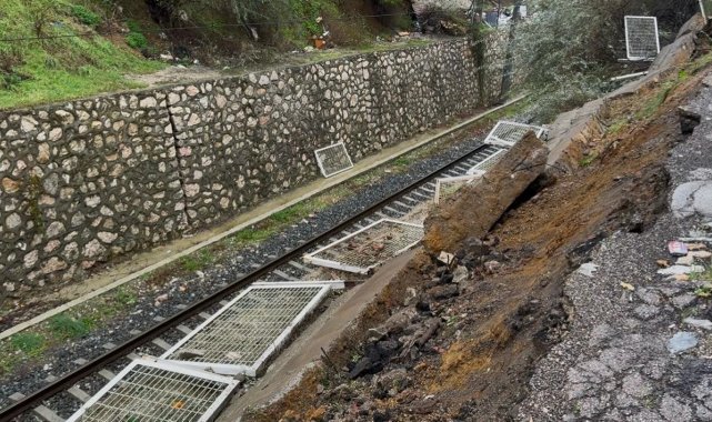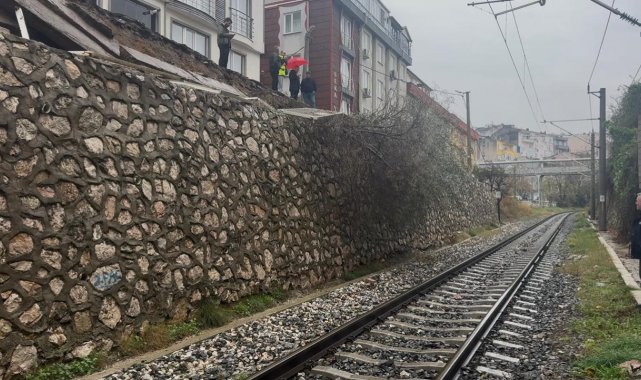 Bandırma'da tren yolu istinat duvarı çöktü