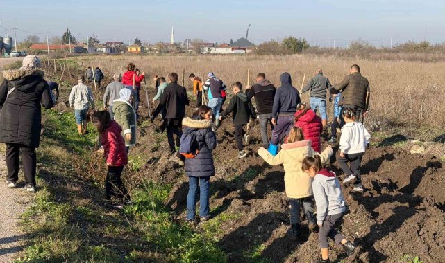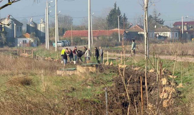 Bandırma ilçe merkezine 33 kilometre uzaklıkta bulunan mahallede gerçekleştirilen fidan dikimi, mahalle girişinin iki yönünde karşılıklı olarak yaklaşık 1 kilometrelik alan boyunca yapıldı.