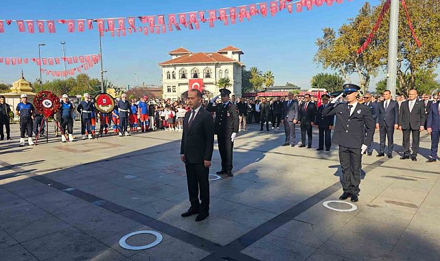 Cumhuriyet Meydanı'nda gerçekleştirilen törende Atatürk heykeline çelenk sunuldu, İstiklal Marşı okundu.