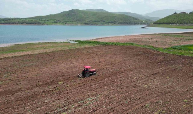 Baraj suları çekildi, ortaya çıkan alan tarıma açıldı