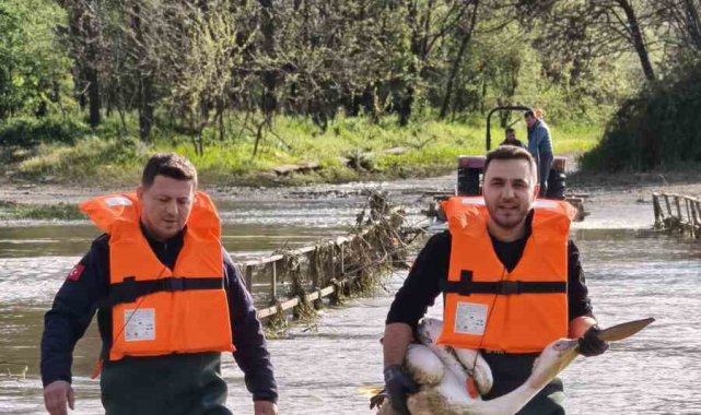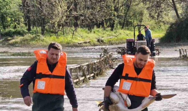 Barajda mahsur kalan pelikan böyle kurtarıldı