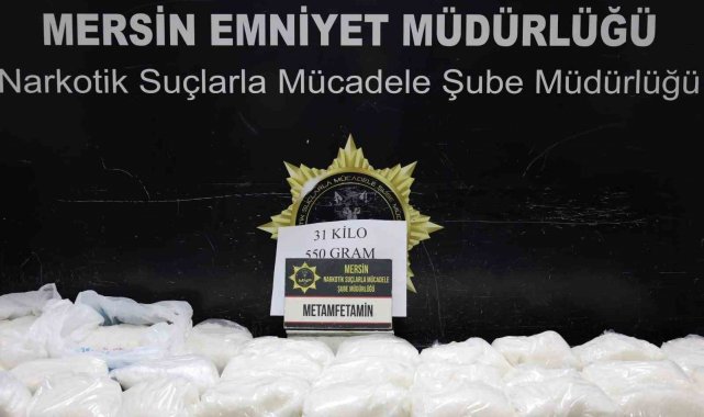 Alınan bilgiye göre, Mersin ve Tarsus Cumhuriyet Başsavcılıkları koordinesinde İl Emniyet Müdürlüğü Narkotik Suçlarla Mücadele ve İstihbarat Şubeleri uyuşturucu ile mücadele çerçevesinde çalışma yaptı. Ekiplerin çalışmasında artçı ve öncü yöntemiyle birlikte hareket eden 3 farklı araç belirlendi. Belirlenen araçları operasyonla alan polis, yaptığı aramada bardak kolilerine zulalanmış 31 kilo 550 gram metamfetamin ele geçirildi. Operasyonda 7 şüpheli de yakalanırken, uyuşturucu madde ticaretinden elde edildiği değerlendirilen 421 bin 180 TL'ye de el konuldu.