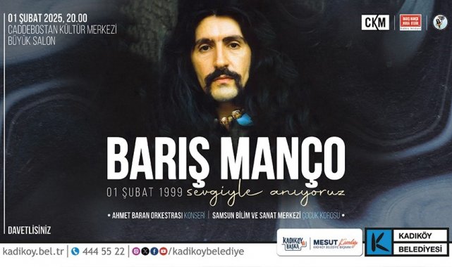 Anadolu Rock müziğinin duayen isimlerinden; şarkıcı, besteci ve söz yazarı Barış Manço, vefatının 26. yıl dönümünde Kadıköy Belediyesi'nin düzenlediği bir etkinlikle anılacak. "Barış Manço'yu Sevgiyle Anıyoruz" anma programı 1 Şubat Cumartesi akşamı saat 20.00'de Caddebostan Kültür Merkezi'nde gerçekleştirilecek. Programda Ahmet Baran Orkestrası ve Samsun Bilim ve Sanat Merkezi Çocuk Korosu Barış Manço şarkılarını seslendirecek.