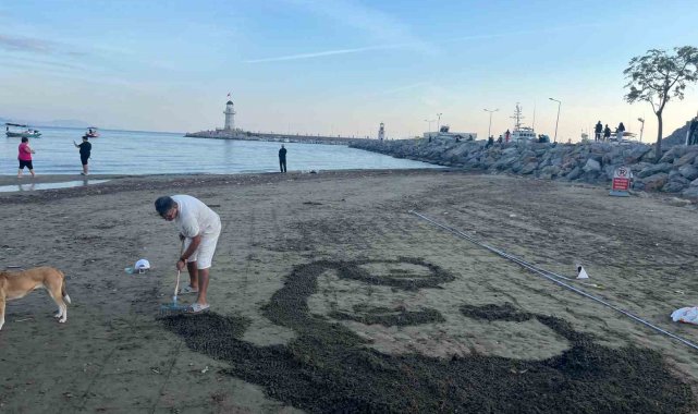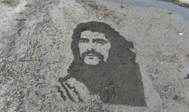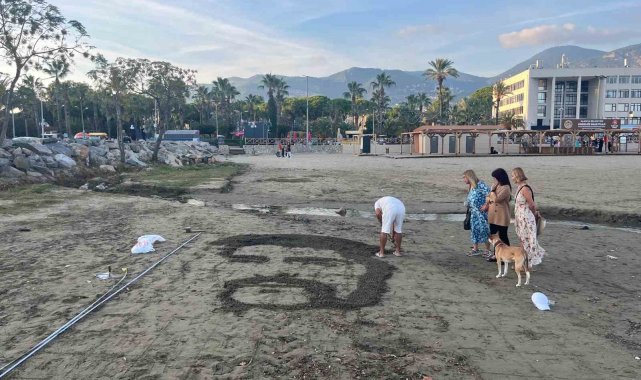 Barış Manço'nun resmini tırmıkla Alanya sahillerine işledi
