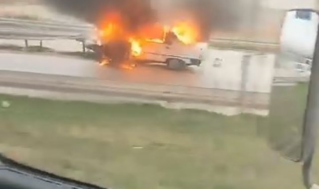 Çanakkale-Bursa karayolunda bariyere çarpan araç alev alev yandı. Yangın ekiplerin müdahalesiyle söndürülürken, araç kullanılmaz hale geldi.