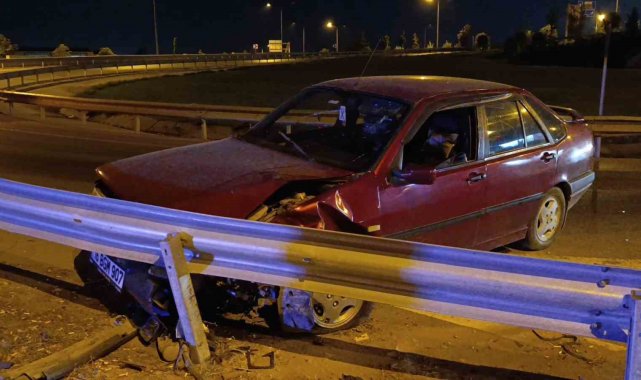 Bariyerlere çarpan sürücü trafik ekiplerine zor anlar yaşattı