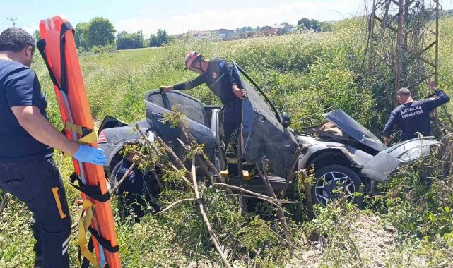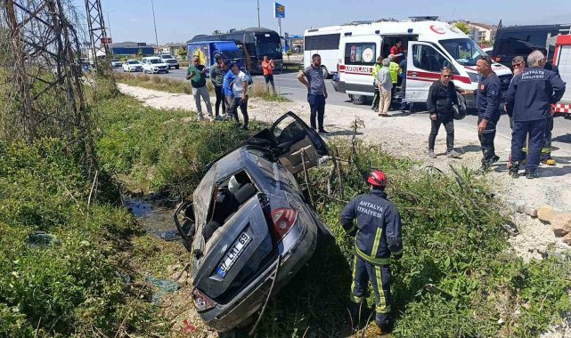 Antalya'da şerit değiştirdiği sırada bariyerlere çarparak takla atan otomobil sulama kanalına düştü. Ters dönen araçta sıkışan 1 kişi itfaiye ve sağlık ekipleri tarafından çıkarıldı.