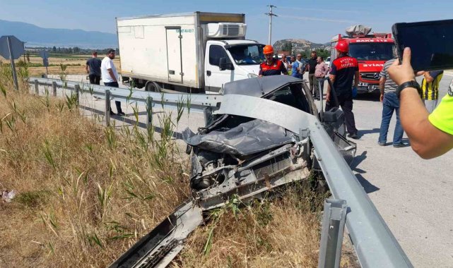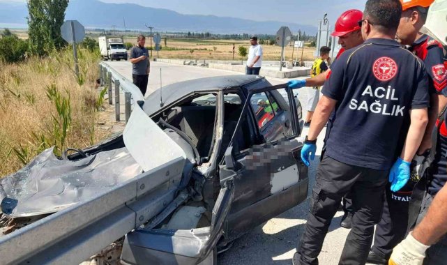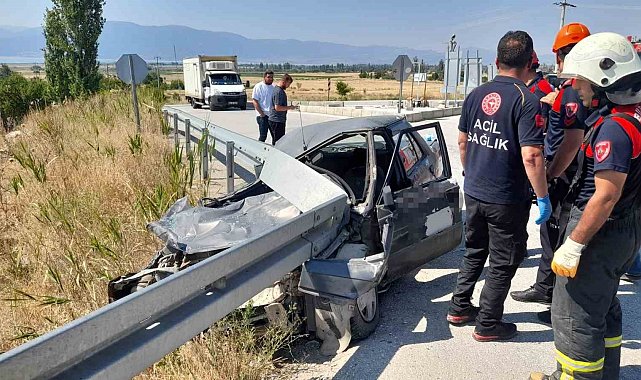 Burdur-Fethiye kara yolunda kontrolden çıkarak bariyere saplanan otomobil sürücüsü yaralandı.