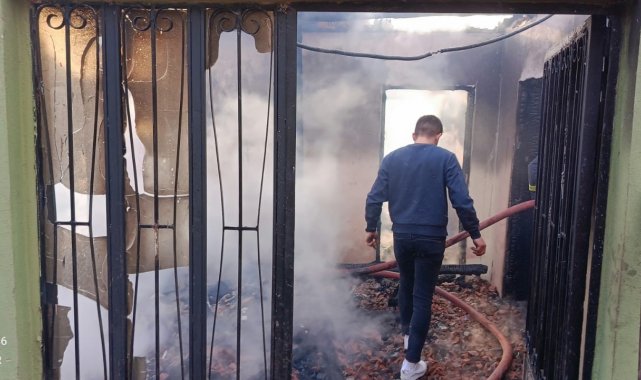 Evde yapılan incelemelere göre yangının soba bacasından çıktığı tahmin ediliyor.
