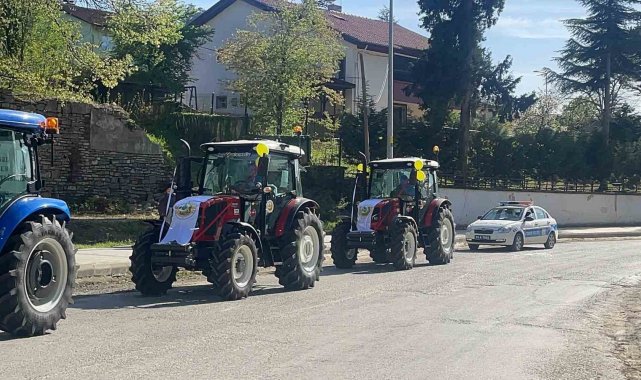 Traktörleri teslim alan orman işçileri programın bitiminde, ilçede tur attı.