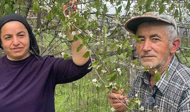 Güneş çiftinin komşuları Sinan Yalçın ise, "Ağaçlar baharda gibi çiçek açmış. Allah'ın hikmeti. Bu sene erik yiyemedik. Bu ağaç da çiçeklenmiş ekim ayında" şeklinde konuştu.