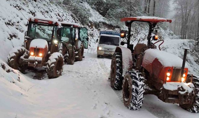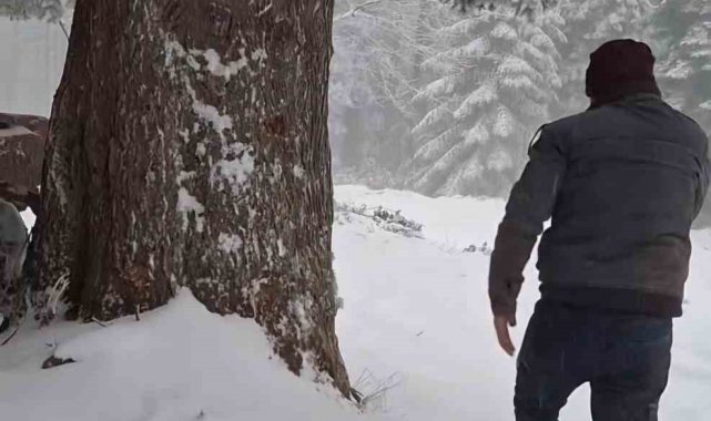 Bazı bölgelerde kar kalınlığı 10 santimetreye ulaşırken, bölgedeki orman işçileri kar ve soğuk havaya rağmen rağmen çalışmalarını sürdürüyor.
