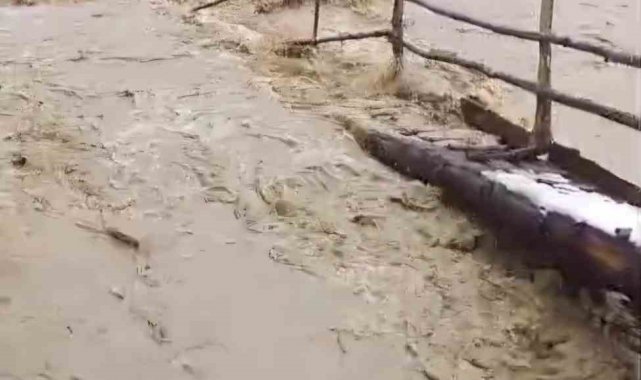 Bartın'ın Ulus ilçesinde günlerdir yağan kar ve yağmur nedeniyle dere taşarken, üstündeki köprü de yıkıldı. Köprünün yakılması nedeniyle 3 evin köyle bağlantısı kesildi.