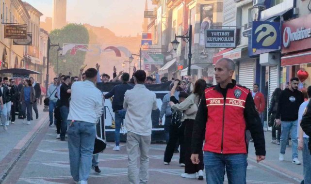 Bartın'da Yukarıçarşı'da toplanan Fenerbahçeli ve Beşiktaş taraftarlar, meşaleler ve tezahüratlar eşliğinde yürüdü. Heyecan yaşayan taraftarlar, şehir merkezindeki asma ve şadırvan bölgelerindeki kafelere kadar yürüdü.