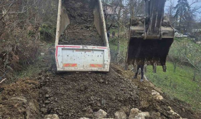 Bartın'da 3 gündür devam eden yağışlar nedeniyle Ulus ilçesine bağlı Dibek Köyü'nde heyelan meydana geldi. Kayan topraklar nedeniyle köy yolu ulaşıma kapandı. İhbar üzerine bölgede çalışma başlatan İl Özel İdaresi Yol ve Ulaşım Hizmetleri Müdürlüğü ekipleri heyelan oluşan alanda taş tahkimat, dolgu, yol tesviye çalışmaları başlattı.