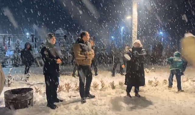 Bartın'ın Ulus ilçesinde etkili olan kar yağışı nedeniyle İlçe Kaymakamı Fırat Kadiroğlu, kurum müdürleri, hakimler ve savcıların da aralarında bulunduğu ilçe protokolü, meydanda vatandaşlarla buluşarak kar topu oynadı. Akşam geç saatlere kadar yoğun kar yağışının keyfini süren protokol ve vatandaşlar, ateşin etrafında ısınarak, halay da çekti.