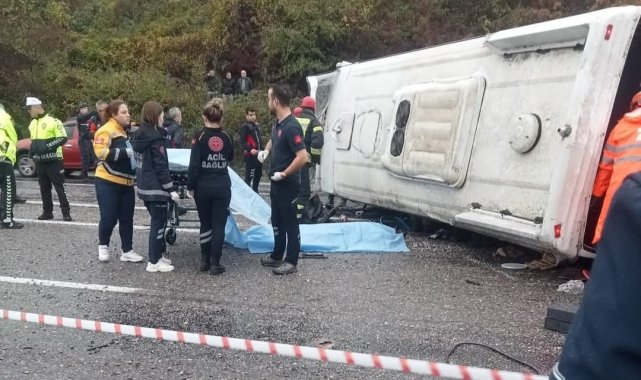 Bartın'da yağmur nedeniyle kayganlaşan yolda işçi servisi devrildi. Kazada 1 kişi ölürken, 19 kişi de yaralandı.