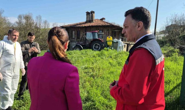 Bartın Tarım ve Orman İl Müdürlüğü ekipleri tarafından kahverengi kokarca istilasına karşı yürütülen çalışmalarda 95 köydeki yaklaşık 16 bin metruk yapıda 4 bin 100 litre biyosidal ilaç kullanılırken, çalışmaların sürdüğü Kabagöz köyünde Bartın Valisi Nurtaç Arslan ve İl Tarım ve Orman Müdürü Murat Türkmen incelemelerde bulundu. Yürütülen çalışmalarla ilgili detaylı bilgi alan Vali Arslan, köylülerle de görüşerek, sorunlarını dinledi. Vali Arslan, basın mensuplarına yürütülen mücadele yöntemleri hakkında bilgi vererek, vatandaşları da destek olmaya çağırdı. Arslan, ''2023 yılından itibaren ilimizde kahverengi kokarca zararlısı ile mücadele ediyoruz. Ülkemize 2017 yılında giren kahverengi kokarca, istilacı bir tür olması nedeniyle maalesef başta fındık olmak üzere birçok ürüne zarar veriyor. Ürün kalitesi, verimliliği açısından olmak üzere ekonomik anlamda ciddi zararları oluyor. İlimizde 2023 yılından itibaren birçok yöntemle mücadelemizi sürdürüyoruz. Bunlardan birisi de kışlak alan mücadelesi. Özellikle kış aylarında kahverengi kokarca metruk binalar, depo, ahır gibi yerlerde kış uykusuna yatıyor tabiri caizse. Yaz aylarında da açığa çıkarak maalesef ürünlerimize zarar veriyor. Bu yıl için muhtarlarımıza 4 bin 100 litre biyosidal ilaç dağıttık. 95 köyümüzde 16 bin metruk bina, ahır, depo ilaçlaması gerçekleştirdik. Kışlak alan dışında yürüttüğümüz başka mücadeleler de var. Haziran ayında doğaya salınacak samuray arılarımız var. Bizim klasik yöntemimiz, cezbet-yok et dediğimiz yöntem var. Bunu daha çok yaz aylarında fremon tuzaklarıyla gerçekleştiriyoruz. Bu mücadele, sadece devletin yürütebileceği bir mücadele değil. Vatandaşlarımızın desteği çok kıymetli. Yan yana iki bahçeden biri ilaçlanır, diğeri ilaçlanmazsa hiçbir anlam ifade etmiyor. Tüm hemşehrilerimizden de destek olmalarını bekliyoruz. Çünkü bütüncül bir mücadele gerekiyor'' diye konuştu.