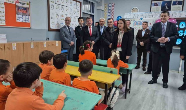 Öğrenci ve velilerle sohbet eden Vali Arslan beraberindekilerle günün anısına fotoğraf da çekildi.