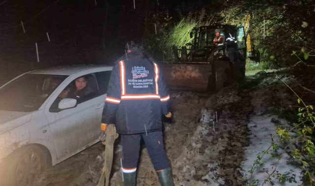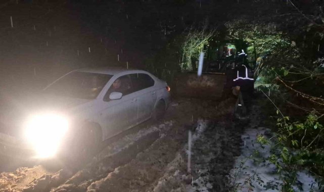 Yaklaşık 2 ay önce Bartın'a gelen A.A. ve eşi, kiralık ev ararkan navigasyonun yanlış yönlendirmesi sonucu ormanlık alana giden patika yola girdi. A.A.'nın yardım istemesi sonucu bölgeye polis, AFAD ve belediye karla mücadele ekipleri yönlendirildi. Kara ve çamura saplanan araç ve çift için zorlu bir kurtarma çalışması başlatıldı. İş makinesine bağlanan otomobil iş makinesi ile yüzlerce metre çekildi. Kar ve çamur nedeniyle zorlanan ekipler, yaklaşık 2 saat mahsur kalan çifti ve aracını kurtarmayı başardı.