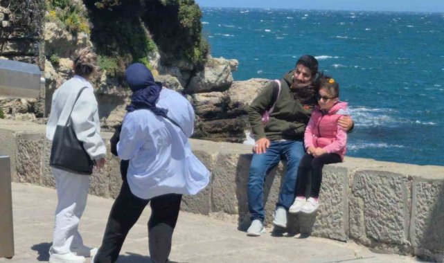 Muhteşem doğası, tarihi ve kültürü ile yerli ve yabancı turistlerin yoğun ilgi gösterdiği Amasra'da 2 gündür şiddetli rüzgar etkili oluyor. Saatte hızı 70 kilometreyi aşan rüzgar nedeniyle, ilçeyi gezen ve sık sık fotoğraf çekilen turistler yürümekte zorlandı.