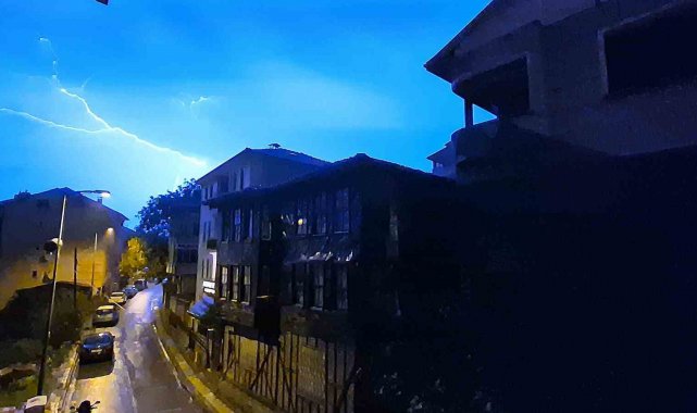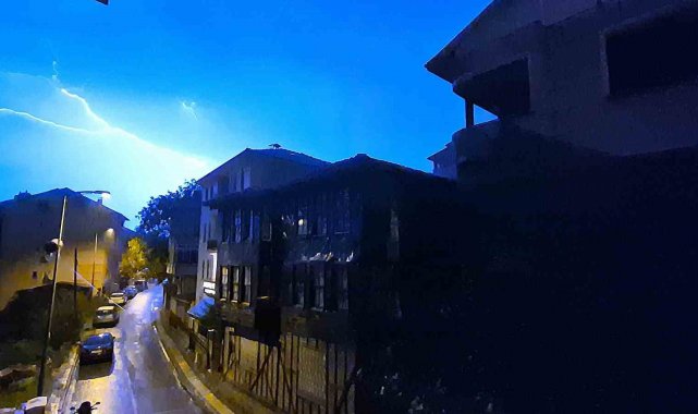 Bartın'da gece saatlerinde başlayan gök gürültülü sağanak yağış sırasında çakan şimşekler geceyi aydınlattı.