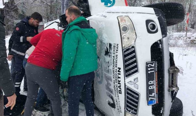 Bartın'da yardıma giden UMKE aracı buzlu yolda devrildi: 1 yaralı