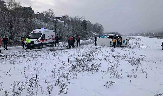 Edinilen bilgiye göre, Bartın-Kozcağız yolunda yolda mahsur kalanların yardımına giden Ulusal Medikal Kurtarma (UMKE) ekibini taşıyan araç, buzlanma nedeniyle yoldan çıkarak, takla attı. Yan yatan araçtaki 5 kişiden 1'i yaralandı. Bölgeye çok sayıda ambulans ve jandarma sevk edildi. Yaralı ambulansla hastaneye kaldırılarak tedavi altına alındı. Yaralının sağlık durumunun iyi olduğu öğrenilirken, araç ise çekici yardımıyla kaldırıldı.