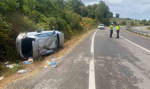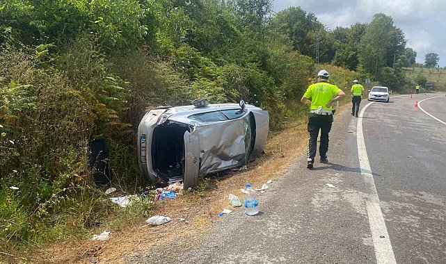 Bartın'da yoldan çıkan otomobil devrildi: 3 yaralı