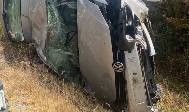 Bartın'da yağmur nedeniyle ıslanan yolda kontrolden çıkan otomobil devrildi. Feci kazada 3 kişi yaralandı.