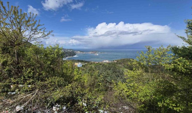 Denizin üstünden Amasra ilçesine uzanan kar bulutları, eşsiz görüntülere sahne oldu.