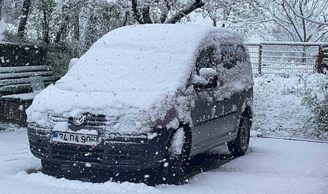 Bartın'da sabah işe gitmek için evlerinden çıkan vatandaşlar, kar sürprizi yaşadı.