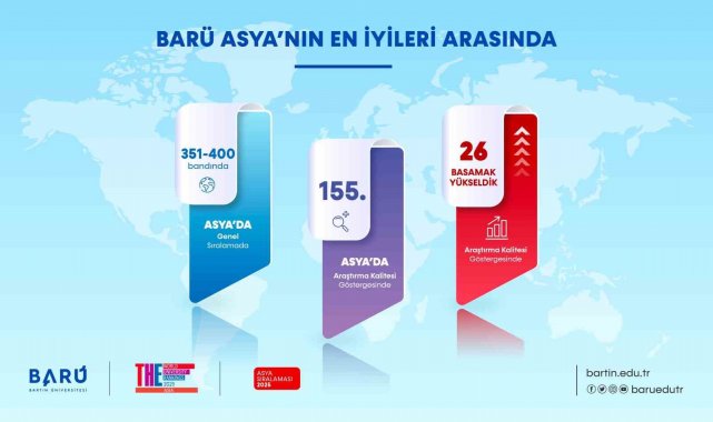 Bartın Üniversitesi (BARÜ) Asya Üniversiteleri Sıralaması 'Araştırma Kalitesi' göstergesinde 26 basamak ilerleme kaydederek 155'inci sıraya yükselirken genel sıralamada ise 351-400 bandında yer aldı.